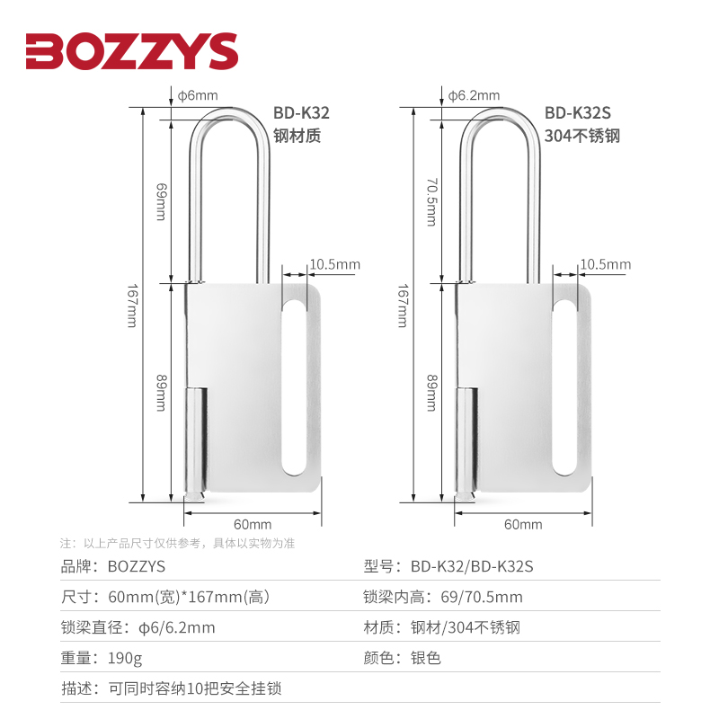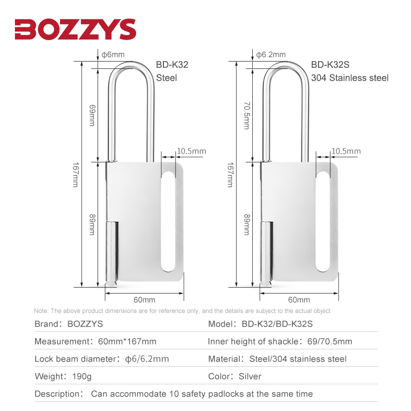 BOZZYS防撬搭扣鎖BD-K32S帶有 70.5mm鎖梁內(nèi)徑,可容納10把掛鎖。非常適合在每個鎖定點由多名工人鎖定,搭扣可在進行維修或調(diào)整時保持設(shè)備不工作。在從搭扣上取下最后一個工人的掛鎖之前,無法打開控制。