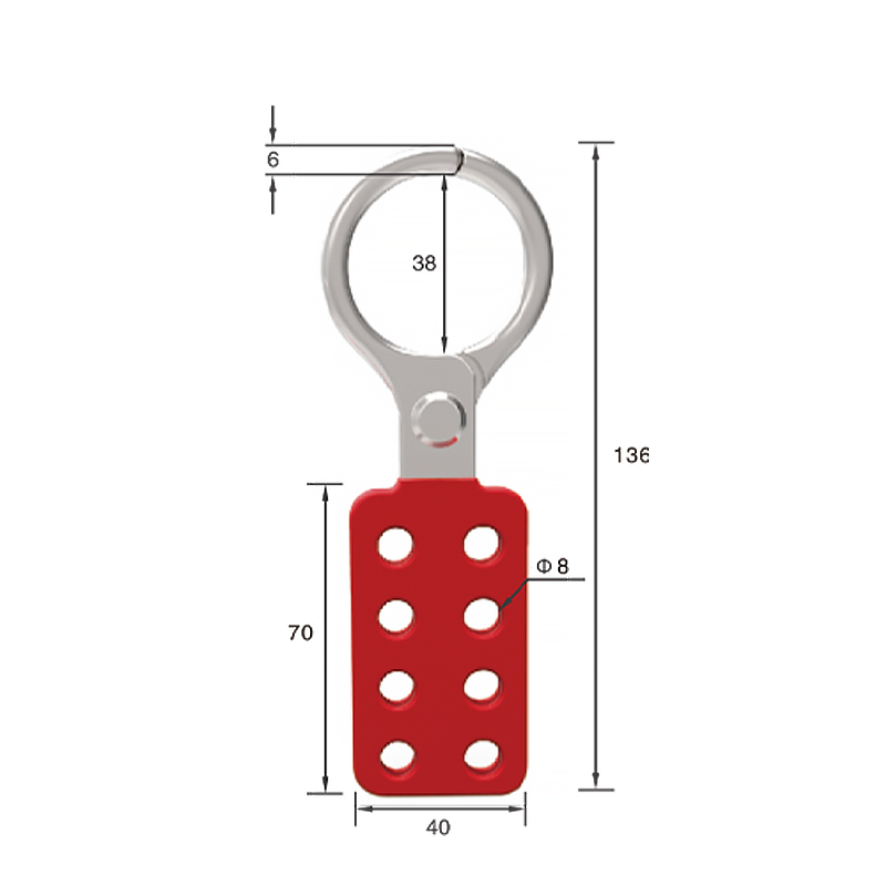 8孔搭扣鎖尺寸為40 mm x 136mm,鉗口內(nèi)徑為1.5'' (38 mm)