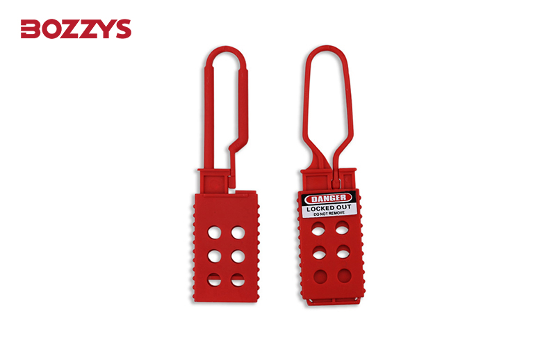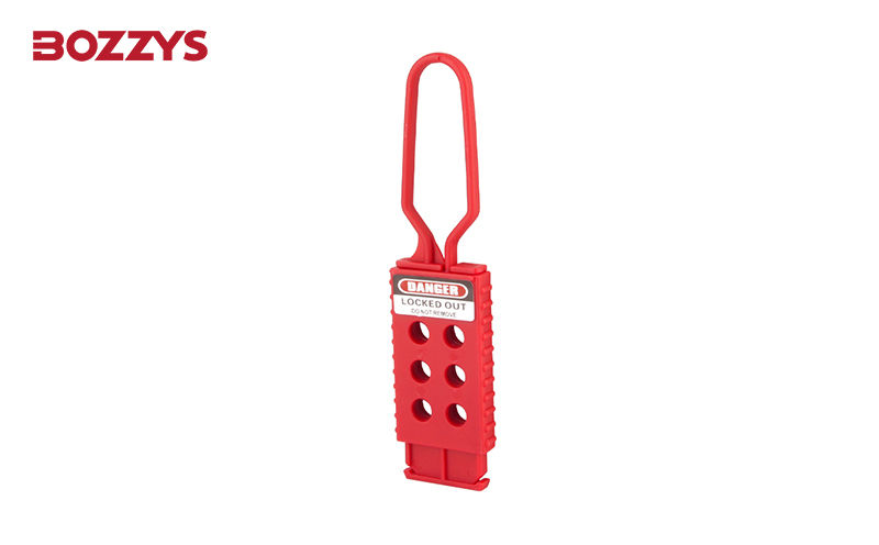 絕緣搭扣鎖尺寸為43 mm x 173 mm,鎖鉤直徑為6 mm,可容納6把安全掛鎖。