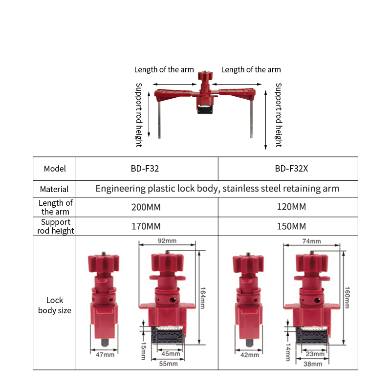 雙擋臂萬用球閥鎖BD-F32適用于手柄寬度≤4cm(手柄厚度≤2.8cm)球閥鎖定。