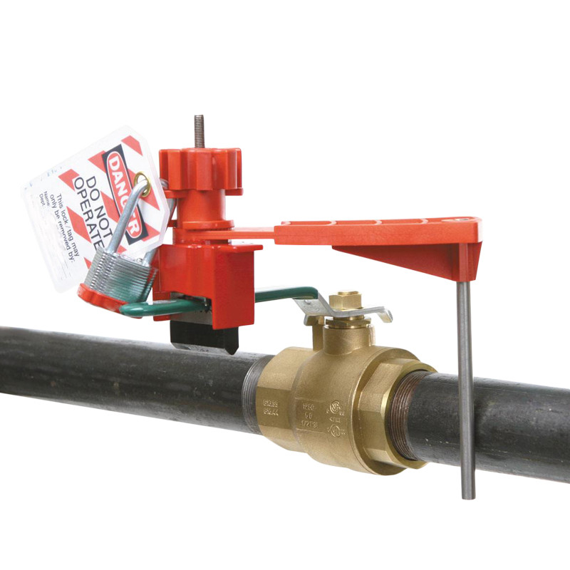 單擋臂萬用球閥鎖具還可以鎖定大型杠桿、T形把手和其他難以固定的機械設備。