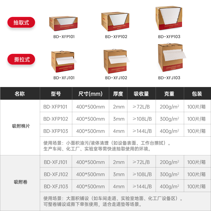 | 吸油棉片 | 40CM*50CM*2MM | BD-XFP101 | 白色 | 25 | 42*52*22cm | 16.53*20.47*8.66 IN | 4.5 |