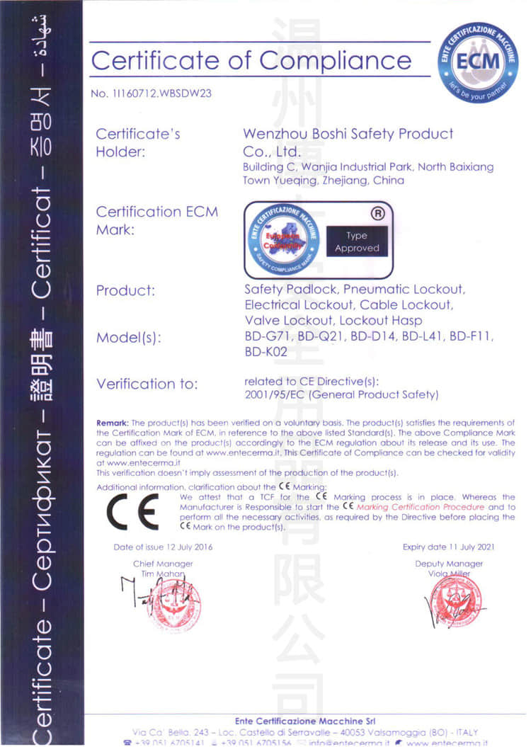 首先祝賀我司出產(chǎn)的安全鎖具系列榮獲進入歐洲市場的權(quán)威護照---CE認證證書! 認證產(chǎn)品明細有:BD-G71/安全儲蓄罐所BD-Q21/多功能···
