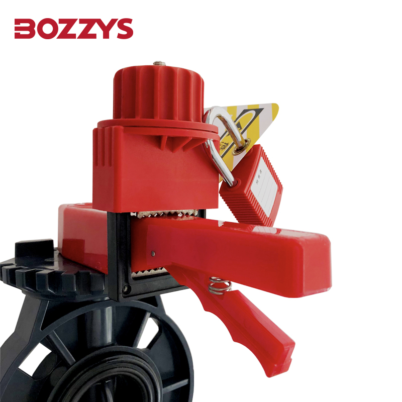 BOZZYS可調節(jié)蝶閥鎖BD-F22適用于部分蝶閥鎖定,閥桿范圍:寬≤42mm;手柄開口≥14.5mm;高5-35mm。多功能開口夾適合部分封閉環(huán)和寬手柄,不銹鋼鋸齒設計,使鎖具緊密固定在蝶閥手柄上,不易松動,無需安裝工具,自帶鎖緊螺絲旋轉手輪,可調節(jié)蝶閥鎖固定在手柄合適位置,轉動手輪鎖緊,再對產(chǎn)品進行上鎖,上鎖狀態(tài)更加穩(wěn)定。采用高強度、耐熱性好、耐沖擊,耐腐蝕的聚丙烯PP材料,耐高低溫-30~140℃ 適用于各種惡劣的作業(yè)環(huán)境。