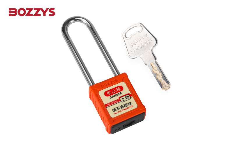 工業(yè)安全掛鎖打開,鎖梁旋轉至側、后面不能被壓下去,防止虛假上鎖,為防止誤操作留下隱患。
