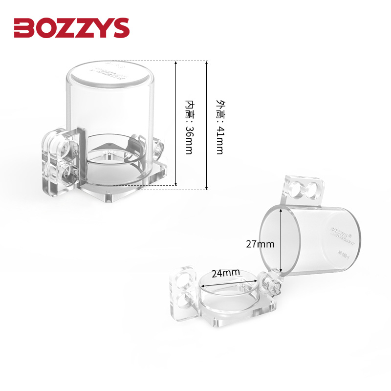 BOZZYS 安全旋鈕保護(hù)罩 BD-D60-1 適用于安裝在推拉或者螺旋釋放的緊急停止鍵上。采用絕緣阻燃耐腐蝕,透明高強(qiáng)度玻璃樹脂PC材質(zhì),可拆卸設(shè)計安裝,只需要將底座安裝在開關(guān)按鈕底部,可將鎖具牢固的固定在控制裝置上,建建議搭配專業(yè)的安全掛鎖進(jìn)行設(shè)備上鎖,有效防止誤觸。