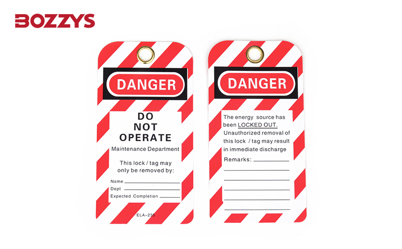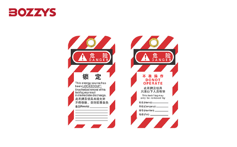 BOZZYS安全吊牌P01用于設(shè)備鎖定做整理行管制,配合安全掛鎖使用,設(shè)備鎖定后,禁止其他人操作。采用防水防潮、隔熱阻燃、耐磨、耐腐蝕的PVC材料制成,安全吊牌上印有‘危險(xiǎn)/禁止操作/注意’等安全警示語和‘姓名/部門/預(yù)計(jì)完成時(shí)間’等空白項(xiàng)目供用戶填寫;用于姓名的提醒設(shè)備已經(jīng)鎖定,不能被操作,同時(shí)提醒鎖定程序只能由實(shí)施上鎖的本人才能解除,在工廠中使用時(shí)可立即辨認(rèn)出使用者,以保護(hù)人員免于受傷,設(shè)備免于受損。