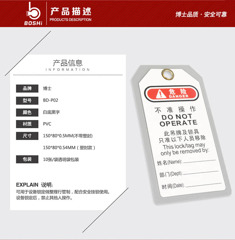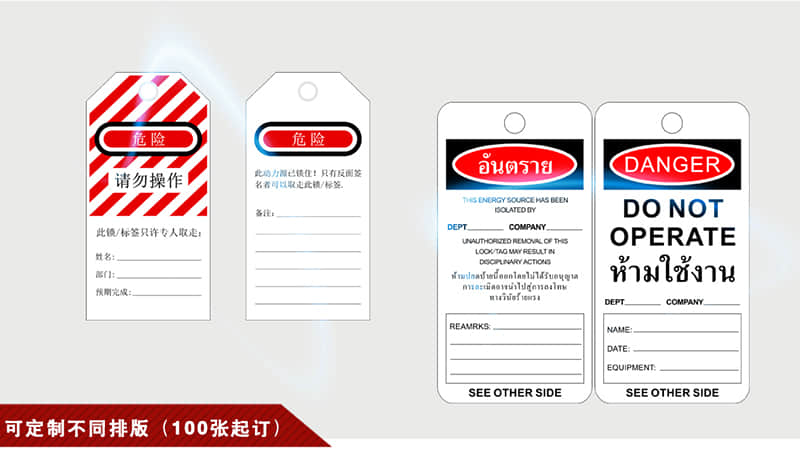 b.安全吊牌上有“危險(xiǎn)/禁止操作/注意等 ”安全警示語和“姓名/部門/預(yù)計(jì)完成時(shí)間等”空白項(xiàng)目供用戶填寫