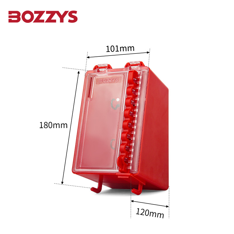 小型壁掛式共鎖箱 BD-X21 寬*高*厚:101*180*120mm;設(shè)有8個(gè)鎖定孔允許多個(gè)工人同時(shí)鎖定鎖具箱,以保護(hù)執(zhí)行維護(hù)和維修操作中的工人。