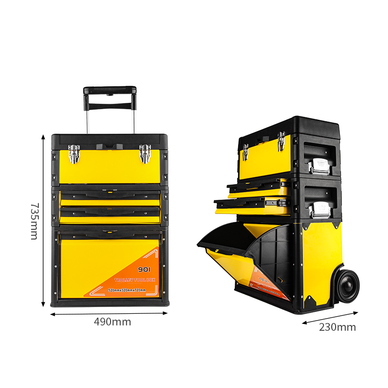 BOZZYS移動(dòng)鎖具站BD-B901采用耐熱、耐磨、抗沖擊、耐腐蝕的工程塑料,塑鐵和不銹鋼材料制成,產(chǎn)品堅(jiān)固耐用,且不易變形,尺寸為寬×高×厚:490mm×735mm×230mm;鎖具站分三層,非常適合攜帶電動(dòng)工具、額外的小零件盒或個(gè)人設(shè)備,方便檢修時(shí)分類裝箱,帶有加厚耐磨大滾輪,鎖具站能夠自由移動(dòng)。