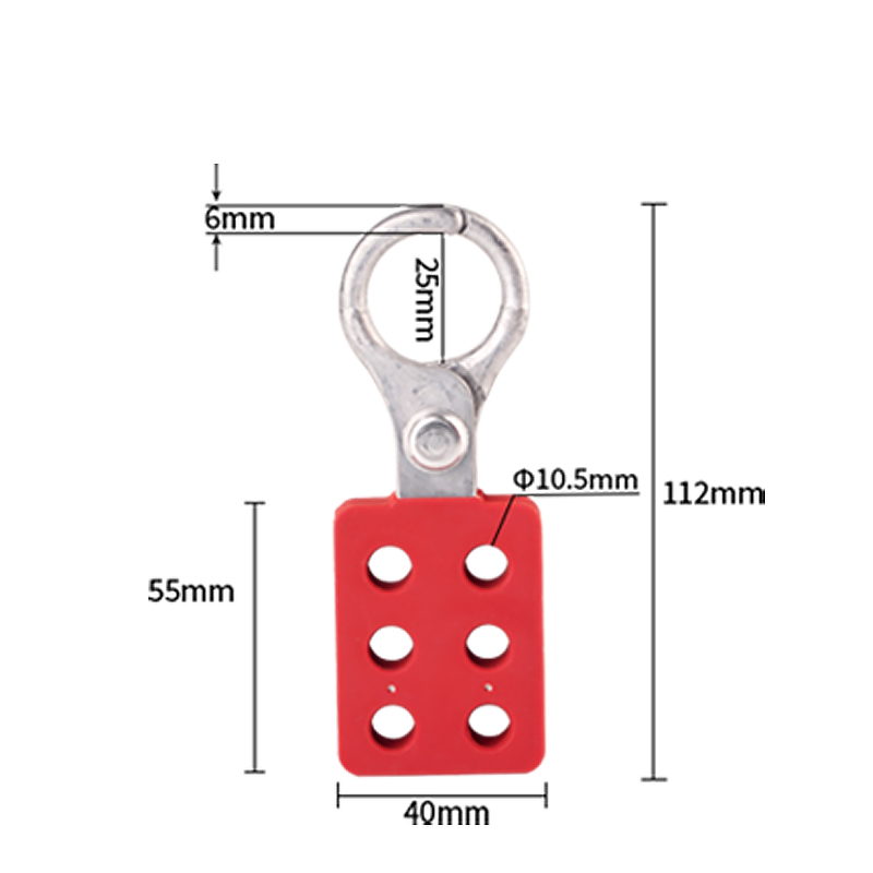 鋁制搭扣鎖尺寸為40 mm x 112 mm,鉗口內(nèi)徑為1'' (25 mm)