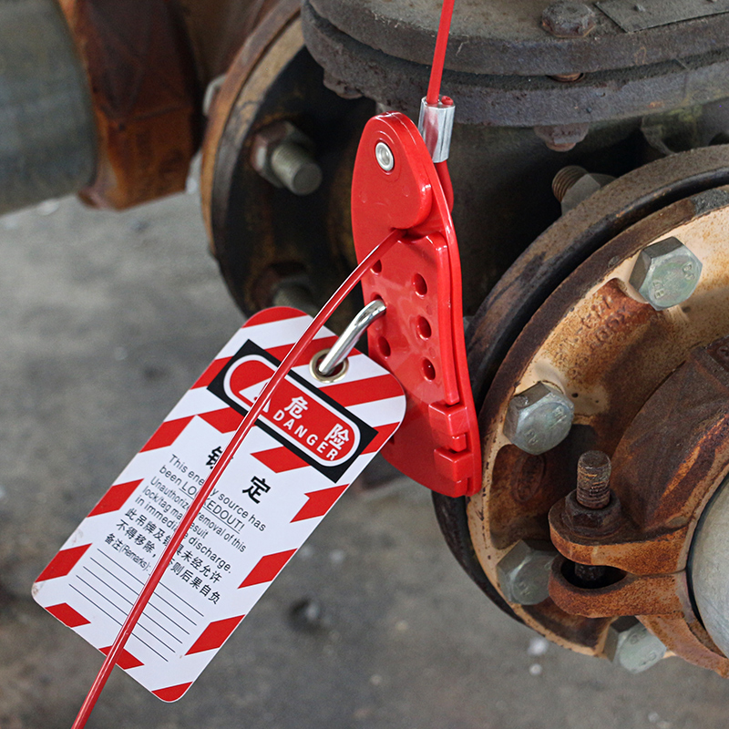 經(jīng)濟(jì)型魚形纜繩鎖L21帶有2m不銹鋼纜繩(纜繩直徑4mm),纜繩外層由抗紫外線PVC制成,適用于工業(yè)球閥、閘閥和其他用于電氣或機(jī)械組隔離的電氣設(shè)備上鎖掛牌使用,以防止意外操作。