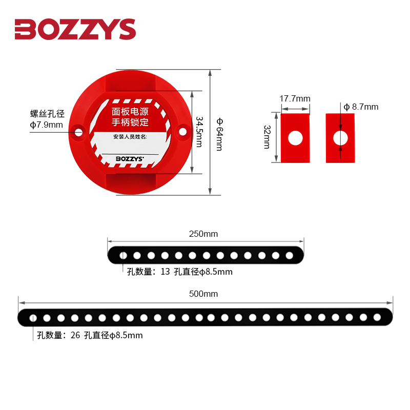 BOZZYS提供工業(yè)電氣安全鎖具系列產(chǎn)品包括:各種尺寸的斷路器鎖、急停按鈕鎖、墻壁開關(guān)鎖、工業(yè)插頭鎖盒、工業(yè)插座鎖、電氣開關(guān)鎖、行車控制器鎖袋、控制面板等系列產(chǎn)品。