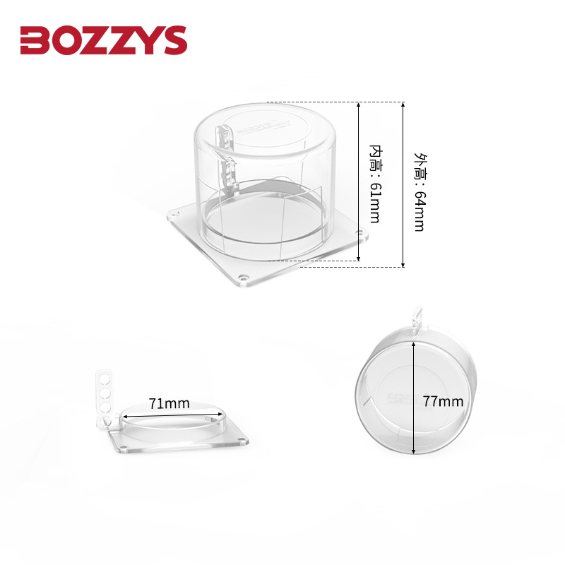 BOZZYS 急停掛牌鎖 BD-D60-2 適用于安裝在推拉或者螺旋釋放的緊急停止鍵上。采用絕緣阻燃耐腐蝕,透明高強度玻璃樹脂PC材質,可拆卸設計安裝,只需要將底座安裝在開關按鈕底部,可將鎖具牢固的固定在控制裝置上,建議搭配專業(yè)的安全掛鎖進行設備上鎖,有效防止誤觸。
