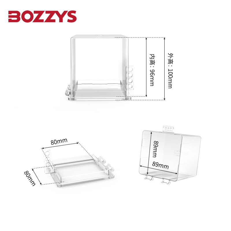 BOZZYS 開關(guān)隔離鎖 BD-D60-5 適用于鎖定直徑小于84MM的開關(guān)按鈕;可防止未經(jīng)授權(quán)使用推/拉和扭轉(zhuǎn)釋放應(yīng)急設(shè)備。采用絕緣阻燃耐腐蝕,透明高強度玻璃樹脂PC材質(zhì),可拆卸設(shè)計安裝,只需要將底座安裝在開關(guān)按鈕底部,可將鎖具牢固的固定在控制裝置上,建建議搭配專業(yè)的安全掛鎖進行設(shè)備上鎖,有效防止誤觸。