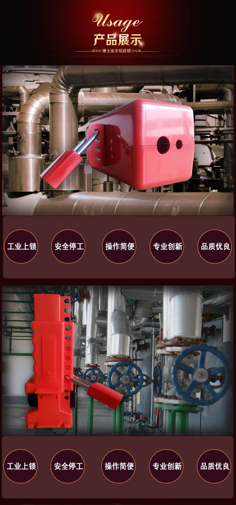 使用范圍:工廠、建筑場(chǎng)所、醫(yī)院、化工、電廠等工業(yè)場(chǎng)所;為上鎖/掛牌所設(shè)計(jì),使用廣泛的安全鎖具。