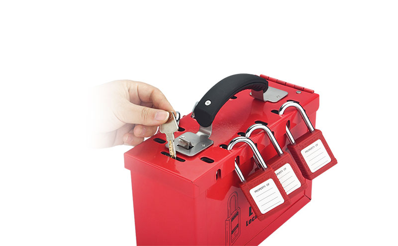 在設(shè)備上工作的每個人在操作期間都將他的個人掛鎖掛到共鎖箱上,并且只有在工作完成后才能將其移除。
