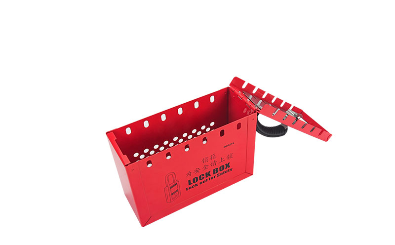12個鎖定孔允許多個工人同時鎖定共鎖箱,將鑰匙統(tǒng)一放在鎖箱中,也可當(dāng)手提鎖具箱使用,可容納若干安全掛鎖,吊牌及小型鎖具等。
