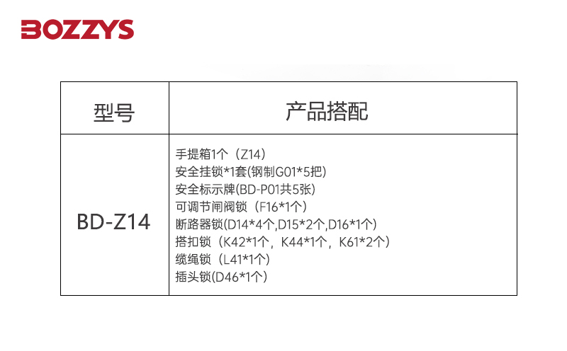 BOZZYS上鎖掛牌鎖具套裝BD-Z14 配有安全掛鎖、搭扣、標(biāo)簽以及各種閥門(mén)和電氣設(shè)備,提供了鎖定的鎖具。所有鎖具都安全地存放在堅(jiān)固的工具箱中,以幫助將重要的鎖定設(shè)備和掛鎖放在一起。為了增加個(gè)人工人的便利,掛鎖配有相對(duì)應(yīng)的鑰匙。