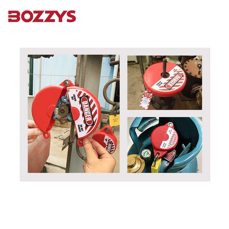 BOZZYS紅色圓盤鎖BD-F13采用抗沖擊、耐高低溫(-40~100℃)、耐腐蝕及不導(dǎo)電的工程塑料ABS一次注塑成型,適用于閥桿直徑(手輪直徑)165mm-254mm(6.5''-10'')的閘閥鎖定,帶有醒目的安全警示標(biāo)簽,支持語言種類、版面調(diào)整、LOGO定制,建議與鋼制掛鎖和安全標(biāo)識牌配套使用,以達(dá)到能量隔離、設(shè)備鎖定、防止誤操作的目的。